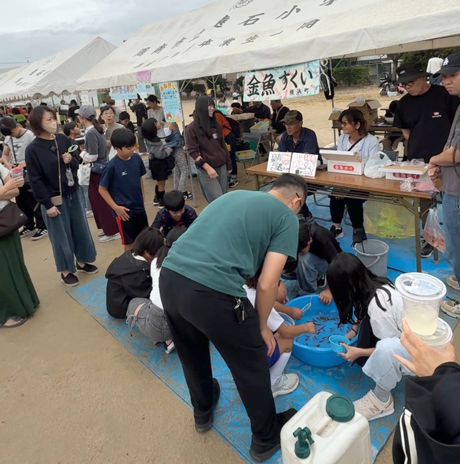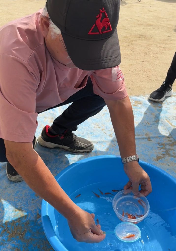 No.569 ヒトが集まる地域の祭り sanbuichi-koji, 2025年10月19日2025年10月20日 今日の遠石秋祭りは、我が横浜町は例年通り「金魚すくい」を出店。毎年自治会からお手伝いで参加してくれる人が増えてきて、今日は10人以上参加してくれて自分などはヒマになってしまったので、来年は焼き芋も出してみようかな? 今日は例年に比べて、中学生が少なかった(多分何か大会中か何かが重なっていたんだろう)けど、相変わらず金魚すくいは盛り上がる。 金魚すくいは、コツさえ掴めばなんぼでも掬えるのじゃ!ヒマな時にチャレンジしたら、14匹掬えた。 今日の秋祭りの企画の中で「新米すくいゲーム」的な時間があり、時節柄長蛇の列ができていた。自分も来月の『大向ふるさと祭り』で大向のふるさとウオーク参加者へ「新米プレゼント」の際に[両手で掬ってもらう]方式を提案したのだけど、『時間がかかるのと不衛生』ということで却下された。 ↑コレコレ!これですよ。やっぱり何かゲーム性が無いと盛り上がらない。 ↑このおばちゃんなどは、思いっきり底から両手で掬ってぶちまけてお米をばら撒いていた(笑)参加者は100円の参加費で、手袋をして両手一杯の新米を持って帰れるので ↑このように、2箇所で長蛇の列ができていた。そりゃそうやろ。遠石小学校区での秋祭り、ざっと見たところ関係者は100名程度なので、やっぱり祭りは「手がかかる」のである。そして、「手がかかる」ほど「盛り上がる」のである。 日々の感想