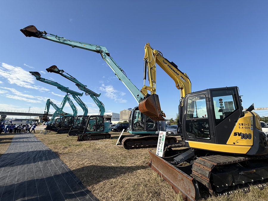 順路があって、これが最初のエリア。もうこれだけでワクワクが止まらん!ぞ。しかも1社ごとにスタッフが専属で付きっきりで説明してくれて、重機も全て操縦したり、モノによっては来場者も体験できる。