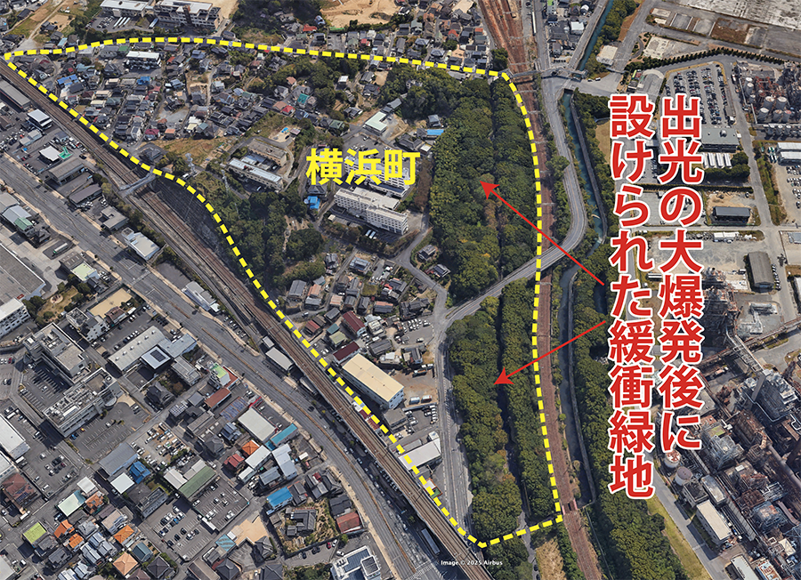 No.589 横浜町の不気味な緩衝緑地 sanbuichi-koji, 2025年11月8日 昨日出光興産の徳山事業所長や総務課長と同じテーブルでの懇親会だったので、「1973年の爆発のことはご存知ですか?」と聞いたら、まだ生まれたばかりぐらいの歳で、実感はないと言うことだった。あの大爆発で当時の横浜町の100世帯以上が移転して、移転した後の住居跡は工場の「緩衝緑地」になった。 このエリアが最近(結構前から)樹木が大きくなりすぎてあまりイメージの良くない場所になりつつある。今日あらためて現場を見てみた。 結構長い直線。ここを一人で歩くのは少し気持ち悪い。 公衆トイレもあるけど、逆にこんなところにトイレがあったら防犯上絶対良くない。 公園のような場所も設けてあるが、こんなところ絶対に人は寄りつかない。以前横浜町の自治会長に、「あのエリアをみんなで整備して、子どもたちが安全に遊べる場所にしない?」と提案したこともあるが、何やら町内にあるけど自治会では手が出せない場所ということを聞いた。明確な理由もわからず、いつも悶々としていたので、昨日は同じテーブルに藤井市長がいらしゃったのでこの件も「なんとかならないんですか?」とお願いしてみた。その場ですぐに秘書を呼び、しかるべき部署に投げかけて調べてもらって回答をいただけることになった。市長に直に何かをお願いできる機会なんて滅多にないので、こんな時に遠慮してはダメなのだ。 日々の感想