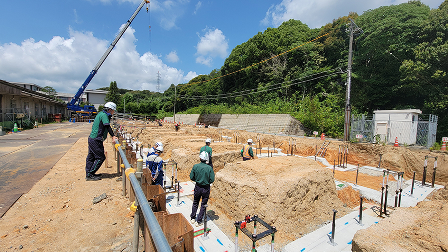 美祢市のクライアント(建設会社)が山口農業高校内に建設している研修棟の鉄骨が組み上がってきた。