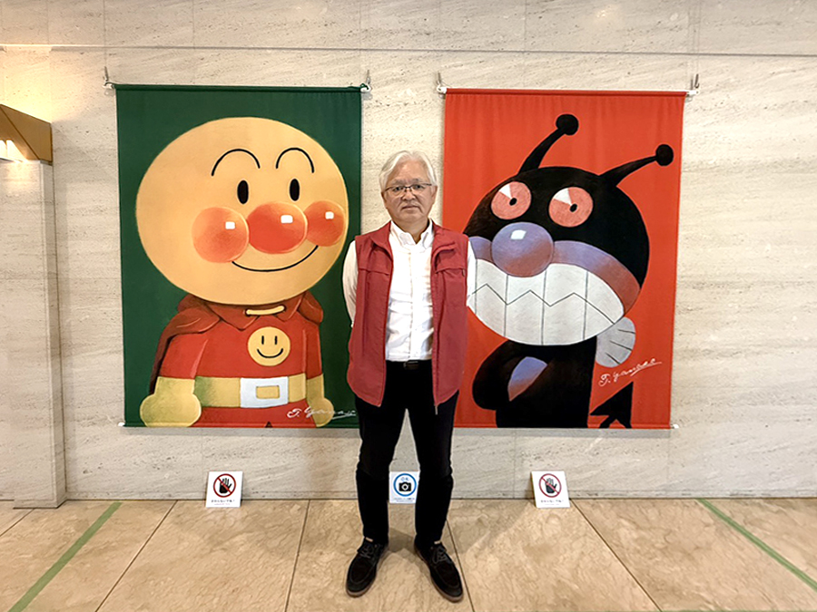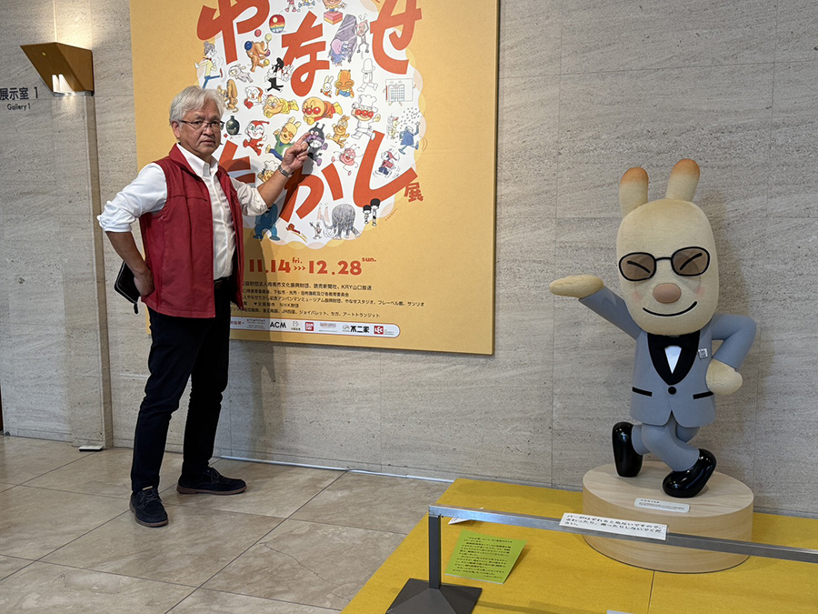 No.596 圧巻の展覧会 sanbuichi-koji, 2025年11月15日 孫の七五三のお参りを遠石八幡宮で。その後の親族での食事会が鐘楼亭だったのでクルマでの道中、そういえば昨日から周南市美術博物館で「やなせたかし展」が開催されたのを思い出した。食事の後、珍しく妻も「行ってみたい」というので、夫婦で美術博物館観覧! 館内は撮影禁止だったので外で記念撮影。「あんぱん」の余韻も残る時期だったので、ものすごい人で館内も大渋滞。順路の展示物の文字を全部読んでいる人も多いので、なかなか進まない。妻が「あんなに一所懸命読むんだね」というので、「多分、遠方からこの展覧会に来た人だろうよ。俺たちみたいに近所だからいつでも来れる訳じゃ無いしね」「なるほど〜」小さい子どもは無理だと思ったけど、展示物の中身は圧巻だったので、多分自分的にはまた落ち着いたらゆっくり観て回る予定。それにしてもデザイナーとしてもやなせたかし氏は相当レベルが高い、感動の展覧会。 日々の感想