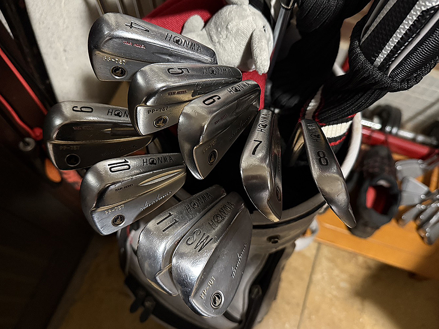 No.603 ゴルフ体力の老い… sanbuichi-koji, 2025年11月22日 なんと1年9ヶ月ぶりのゴルフ。クライアントのコンペに出席なので半分仕事かな?今やゴルフよりも登山の魅力の方が完全に勝ってしまっているので、ここ4年間で2回目のラウンド。しかも、古いモノに目がないサブちゃんは3年前にオークションで惚れ惚れするようなデザインのアイアンを見つけてしまって激安だったので購入して使ってみた。 大学生時代(40年以上前)には大人気だったHONMAのアイアンのプロモデル。今の簡単なアイアンとは一線を画す、カミソリのように薄くてペラッペラなフェース。調べてみると37年前の製造のクラブだった。こんなのがバッグに入っていると「すごいクラブが入ってますね!」ってびっくりされる。今こんなのプロでも絶対使わない…そして、案の定、全く打てなかった〜!まあ2年ぐらいクラブを握ってもない状態でこんなの打てるわけないよね(泣)。しかも、37年も前のシャフトは機能的にも「終わってる」感じ。自分が想像した飛距離の2割減!ぐらいしか飛んでない(泣)。それ以上にショックだったのが、肉体的なゴルフ筋肉の「老い」。せっかく広々したゴルフ場に来たのだからカートに乗るのが勿体無いので、ずっと走ってラウンドしていたら、後半ドライバーを打った瞬間に右のふくらはぎが「こむら返り」。同伴者の人が「三分一さんこれ飲んだらすぐに治る」と言われて漢方の薬を提供してくれた。ゴルフを頻繁にする人はみんないろんな薬を常備して万が一に備えてるのね。自分はまだ40歳ぐらいのつもりでゴルフをしていたけど、筋力も落ちているので普通に打っても、もう昔みたいに飛ばないのに、まだ昔のハードなスペックのクラブでプレーしようとするんだから、ますますコースが長く感じる、今日は本当に「老い」を感じて情けなかった。ただしそんな中、後半の8番、ピンまで約200ヤードの長いショートで、UT(ユーティリティー)の3番が『今日初めてナイスショット』した。 ほとんどOKのベタピンに(嬉) OKバーディー、ニアピンも掛かっていたので多分獲れたでしょう。もうこれだけで今日は思い残すことはありません。やればできる子なんです(泣)。この次のラウンドはまた1年後か?わからないけど、今日使ったアイアンセットは、もう捨てる(インテリアで飾っておく)でしょう。昔取った杵柄は、邪魔でしか無いという、今日の教訓。 日々の感想