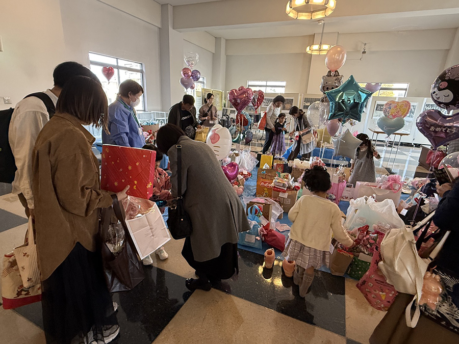 ロビーには、出演した子どもたちへの『贈り物』を預かるスペースが用意されていて、とんでもない量のプレゼントが届いていた。↑幼児の部だけでもこんな量があり、一人の子供に対して5つも6つも置いてあるのが普通らしい。そういう我が家も、妻が孫のために一生懸命「贈り物」を手作りで用意していた。