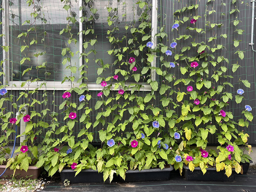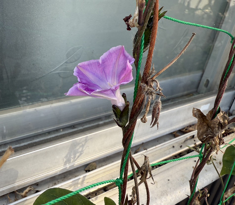 No.611 冬に咲く朝顔 sanbuichi-koji, 2025年11月30日 今年朝顔の種をもらって植えたのが5月始め。↑朝顔ネットを作って6月にはこんな状態で毎日朝顔が咲いていた。そんな朝顔も次第に枯れ始め、秋にはほとんどツルの残骸しか残っていない・・・と思いきや、1本だけしぶとく残ってなんと毎日のように花が咲き続けていた。この朝顔を『ど根性朝顔』と名付けて見守っていると 今日も咲いている!朝顔って冬も咲くのか?12月に入って咲いたら奇跡かも。なんとか明日も頑張って咲けよ〜! 日々の感想