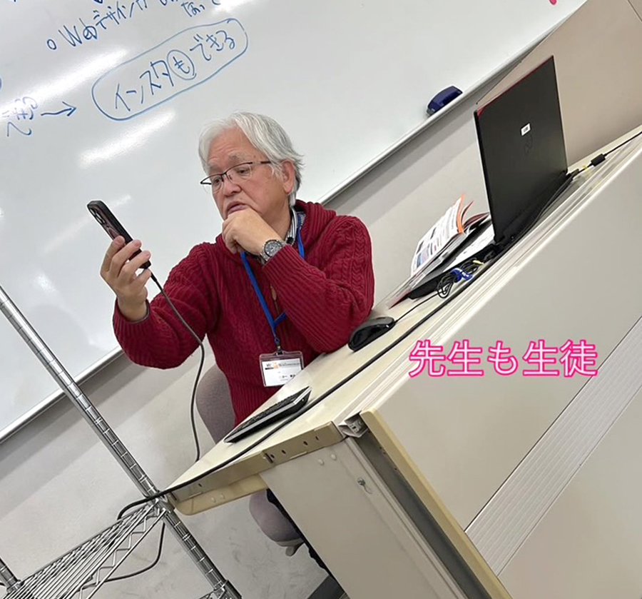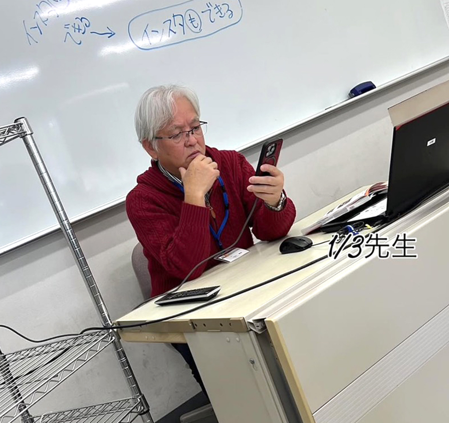 No.629 先生も生徒 sanbuichi-koji, 2025年12月18日 “生徒にイジられるようになったら先生も一人前です。”なんのこっちゃだけど、毎日6時間ずぅ〜っと同じ教室の中で過ごしていると、仲良くならん方が違和感がある。SNSのコンテンツ制作で、受講生も先生も一緒に「架空のインスタグラムのアカウント」を作って、教室内だけの非公開の状況でフィードやストーリーズの投稿の練習をするのに、とりあえず受講生は先生を撮りまくって遊び始めた。 こんなのや 先生も一緒に勉強するので アンケート機能を使って、こんなのも。先生としては、受講生の皆さんが多分全員「面白がって授業を楽しんでいる」には違いないのを感じるので、もっとイジっていいとも〜!と思っているのである。明日も6時間、さらに楽しく行こう! 日々の感想
