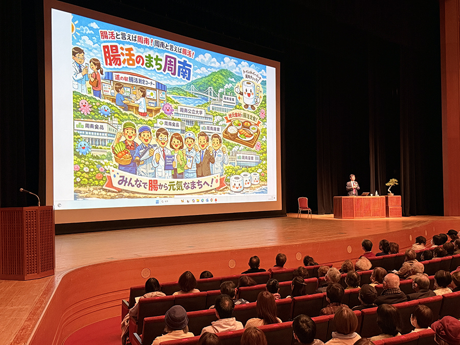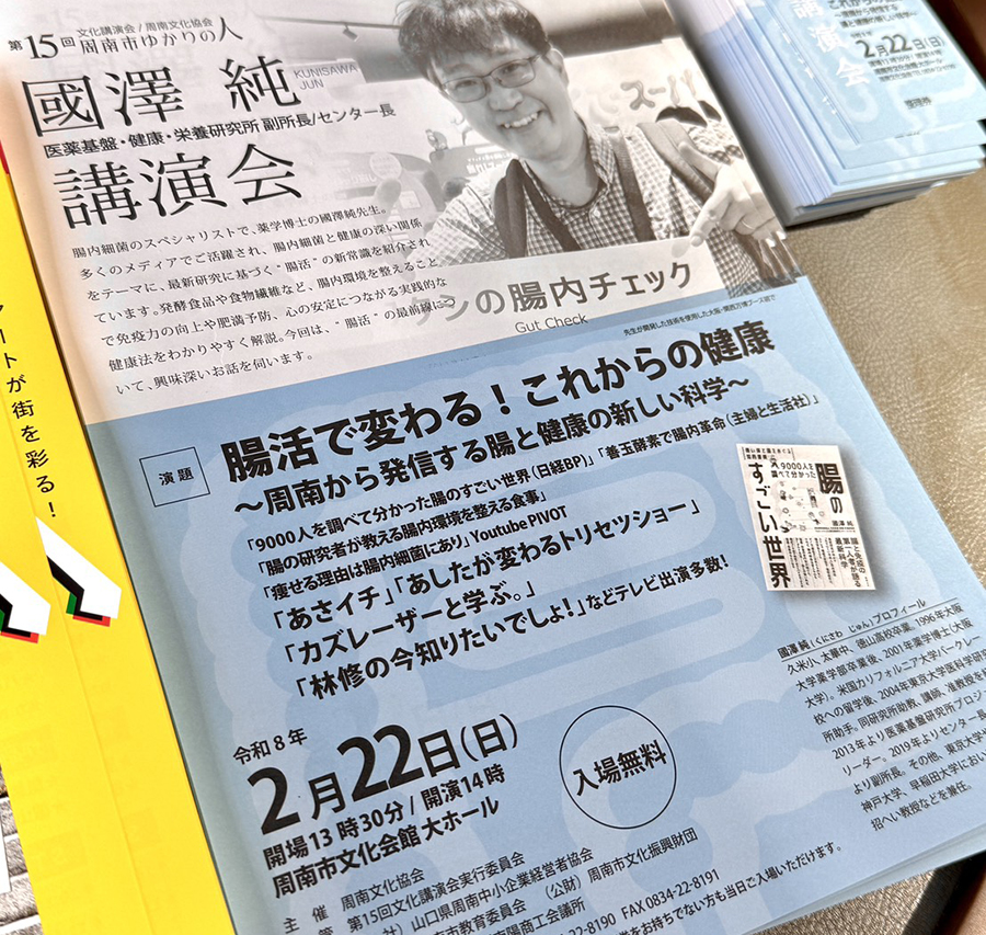 No.695 スーパーからヨーグルトが消える日? sanbuichi-koji, 2026年2月22日 入ったねぇ〜文化会館。 徳山高校の後輩の國澤純氏の講演会。入場者950名(主催者発表)で15回の文化講演会で最多入場者を更新!内容も大変面白かった。 國澤君は周南市役所の職員の腸内細菌のデータを7年間にわたってとり続けているらしい。 テレビ出演もかず多くこなしているだけあって、トーク力も一級品! かなりの割合で、メモを一生懸命とっている来場者がいた。腸内環境を整えるには「スーパーの特売ヨーグルトがいい!(同じ種類ばかりじゃなくていろんな種類のヨーグルトを食べた方が効果があるらしいので、日替わり特売品のようなものがベストらしい)」というキラーワードが出たので、今日は周南市内のスーパーからヨーグルトが消えるかも(笑)。 2階席まで解放するのは文化講演会では多分初。これだけ盛況だと、次回の人選がまたまた悩ましい・・・。 日々の感想