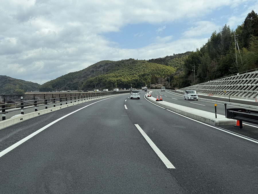 防府バイパスから合流するポイント。ここの1車線になるところが渋滞していたので、ずいぶん感じが変わった。