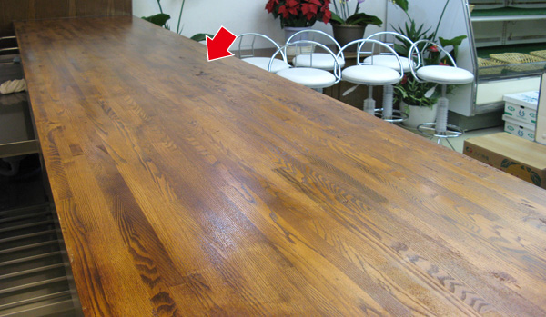 電動かんなと苦労の痕跡 wizzplanning, 2010年12月16日2024年4月1日 一枚板の件、なんとか間に合わせた。 工務店の職人サンが持って来た「電動かんな」が大活躍。 今回また一つ勉強になったが、集成材の一枚板と言っても家具用に造ってあるので特に硬いのだそうだ。しかも集成材は木目が入れ違いになっているので鉋(かんな)ではやはり無理だった。 電動鉋と電動サンダーで一皮むいた(白い)一枚板にオイルステインとニスを塗ってもらった。 矢印の部分は昨日自分で鉋を必死にかけたけど「逆目」を無理矢理起こしてデコボコになってしまった部分。綺麗になったので余計に目立つ。 職人「三分一さん、パテがあったら綺麗になりますけどどうします?」 自分「いやこのままでいい。俺が頑張った跡を残しておく」 今回の苦労は、自分と最初から携わってくれた職人しかわからないし、元々の状態から比べたらはるかに綺麗になっている。 作業も終える頃にはオープンに向けて続々と果物が搬入されて来た。一気に果物店らしくなって来た。 事務所に帰って来たらみかんが届いていた。 ではなくて、上海からぬいぐるみ500個が届いた。こう見たら本当にみかんに見えるが、 こんなに可愛いヤツなのだ!携帯ストラップにもなる。 未分類